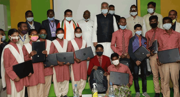 मुख्यमंत्री ने संकल्प शिक्षण संस्थान जशपुर के विद्यार्थियों को लैपटॉप दे कर किया प्रोत्साहित