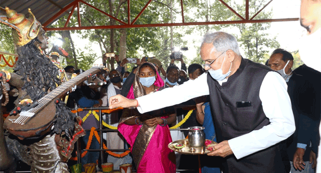 मुख्यमंत्री ने महोरा गौठान का किया निरीक्षण, गोबर से निर्मित सरस्वती जी की प्रतिमा पर पुष्प चढ़ा कर किया नमन